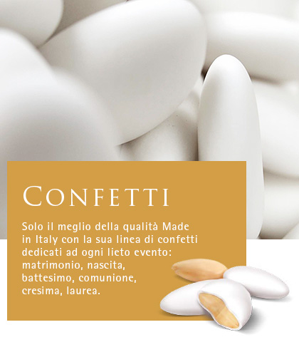 Scopri le nostre linee di confetti per il matrimonio, battesimo, nascita, comunione, cresima, laurea e altre occasioni speciali. Ogni confetto è realizzato con amore per regalare emozioni che durano nel tempo.
